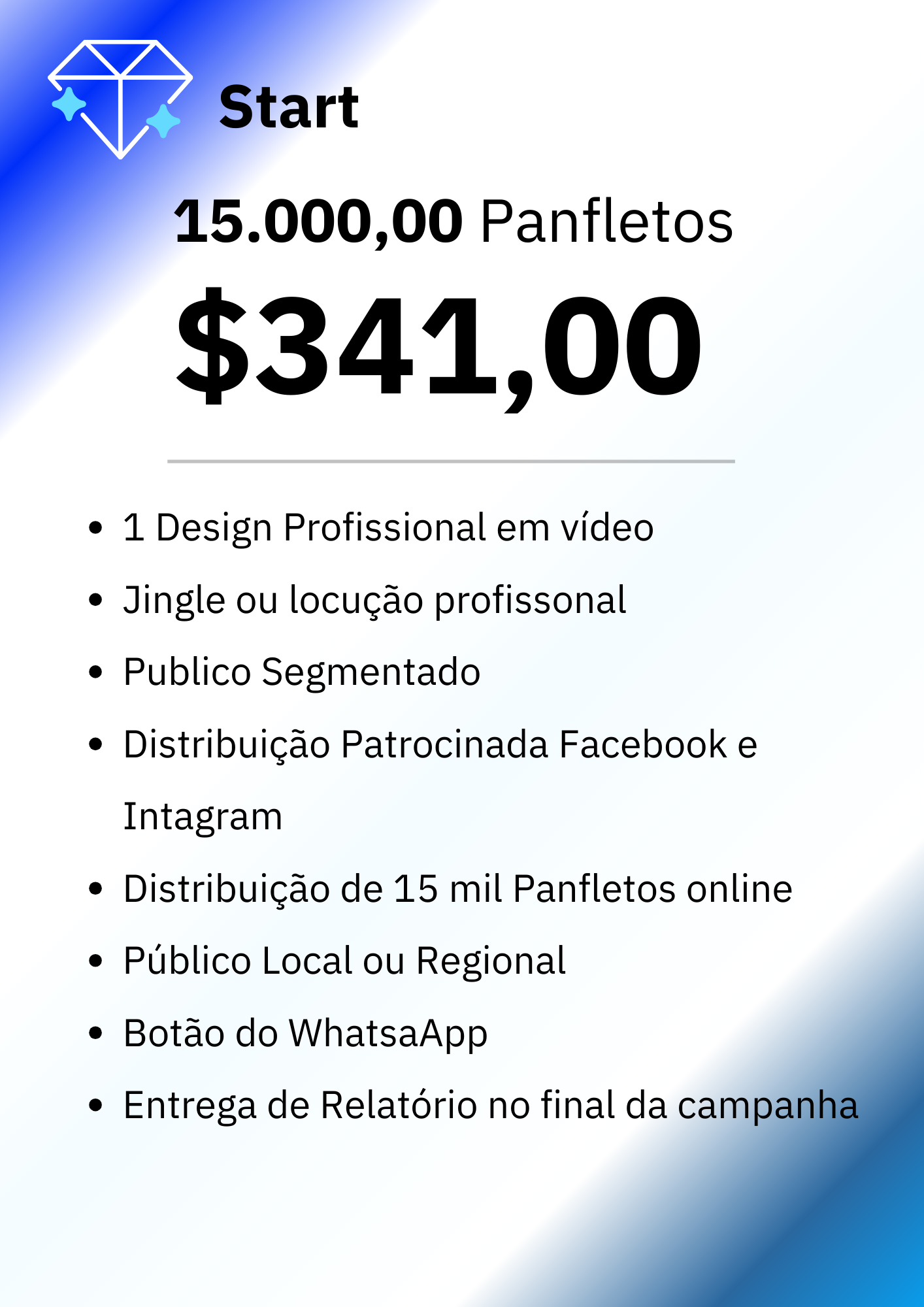Você receberá um relatório do desempenho da sua campanha ao final da distribuição e propagação do mesmo.